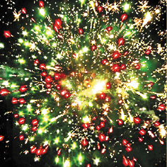 1. Множество серебряных ниспадающих нитей (парча) и красное мерцание.