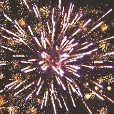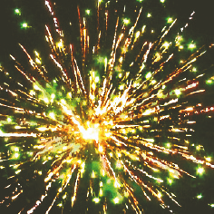 10. Оранжево-синяя сфера (пион) и облако треска (трещащая хризантема).