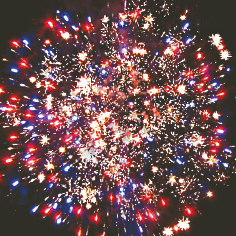 5. Синяя сфера (пион), красный мерцающий разрыв переходит в белые хлопья (слива).