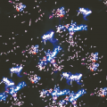 13. ЗАЛП: Хаотично разлетающиеся серебряные огоньки (мошки) и синие звезды.