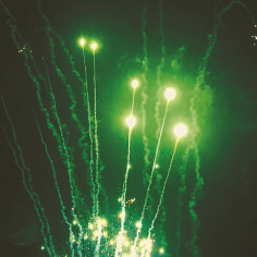 12. Разрыв красно-зелеными шуршащими разлетающимися кометами (паучки).