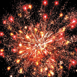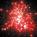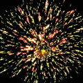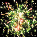 7. Красочная концовка: желто-красная сфера (пион) и облако трещащих разрывов (трещащая хризантема).