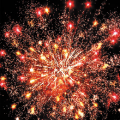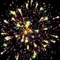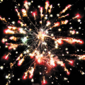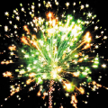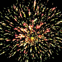 6. Трещащая комета разрывается желтыми шуршащими разлетающимися кометами (паучки), зелено-белым мерцанием.