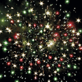 1. Красные звезды с пышными хвостами (кокос) и белое мерцание.