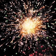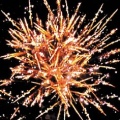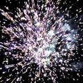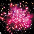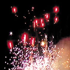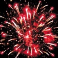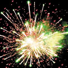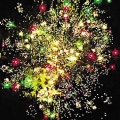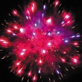 Вверху - красно-зеленая сфера (пион) и облако трещащих разрывов (трещащая хризантема).