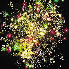 11. Зеленая сфера (пион) и мерцающие золотые хвосты (мерцающая ива).