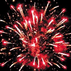 Красные звезды с пышными хвостами (кокос) и золотое мерцание.