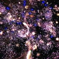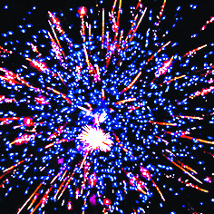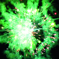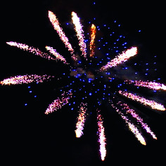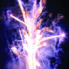 13. Искристая змейка, синяя сфера (пион) и облако трещащих разрывов (трещащий дождь).