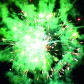 в центре - красная мерцающая комета разрывается зелено-красными шуршащими разлетающимися кометами (паучки).