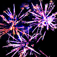Вверху - веер V-формы: серебряные звезды с пышными трещащими хвостами (трещащий кокос).