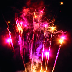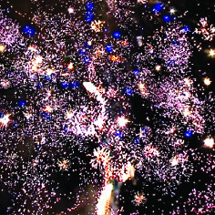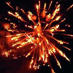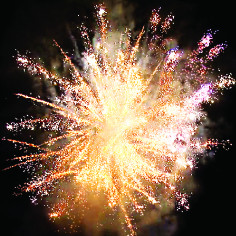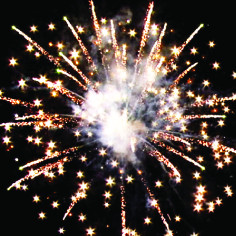 17. Красочная концовка: ЗАЛП золотых звезд с пышными трещащими хвостами (трещащий кокос).
