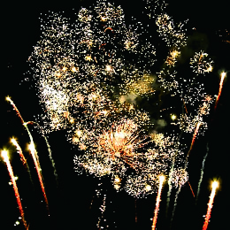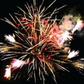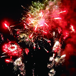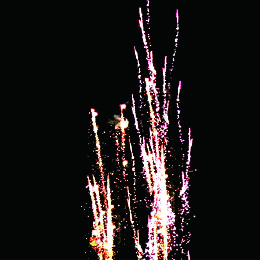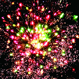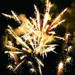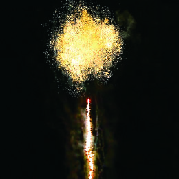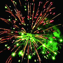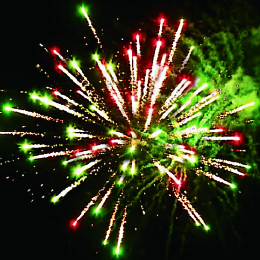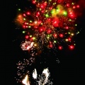 5. Серебряная вертушка разрывается красно-зеленой сферой (пион) и треском.